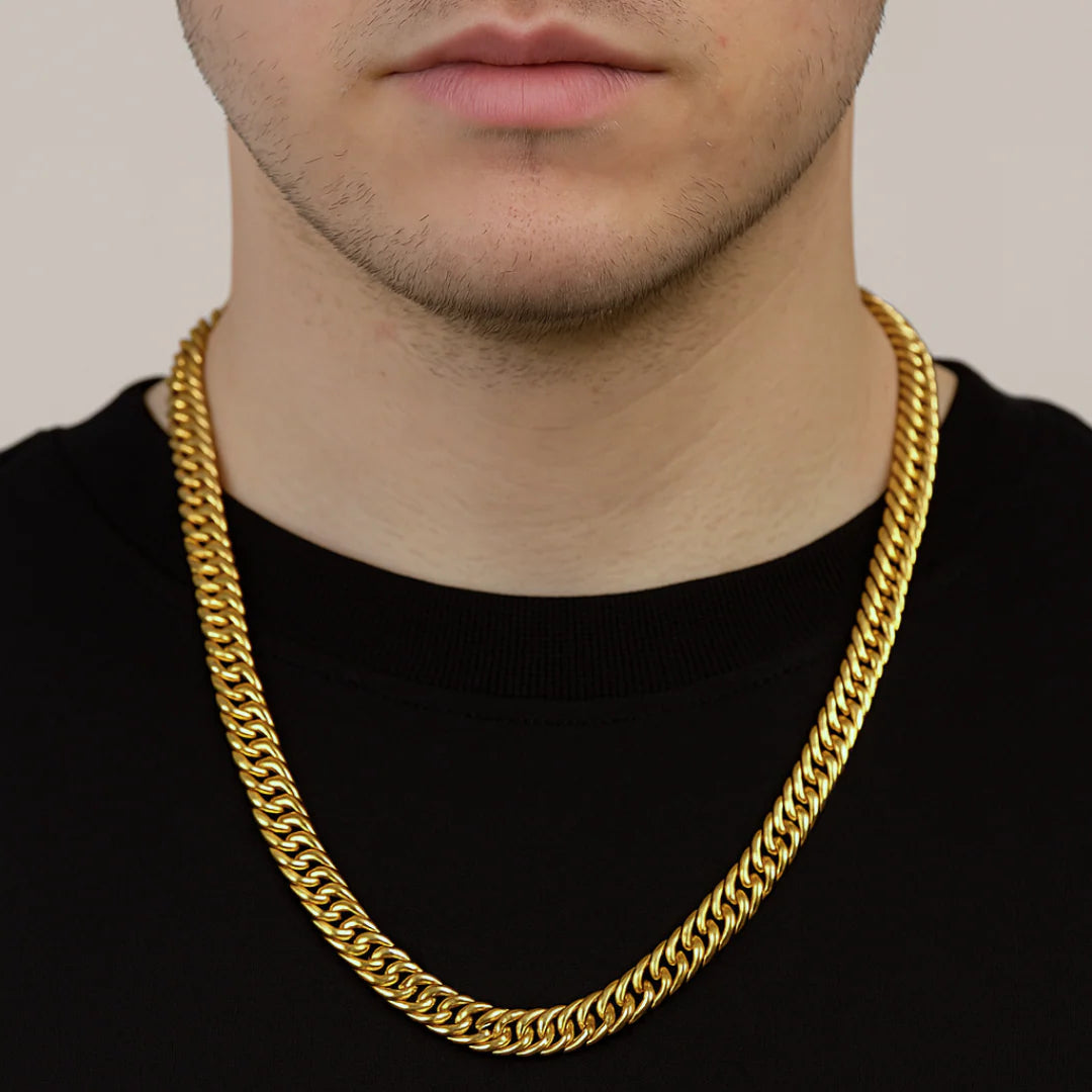 A bold, heavyweight gold chain with a striking interlock pattern for maximum impact.